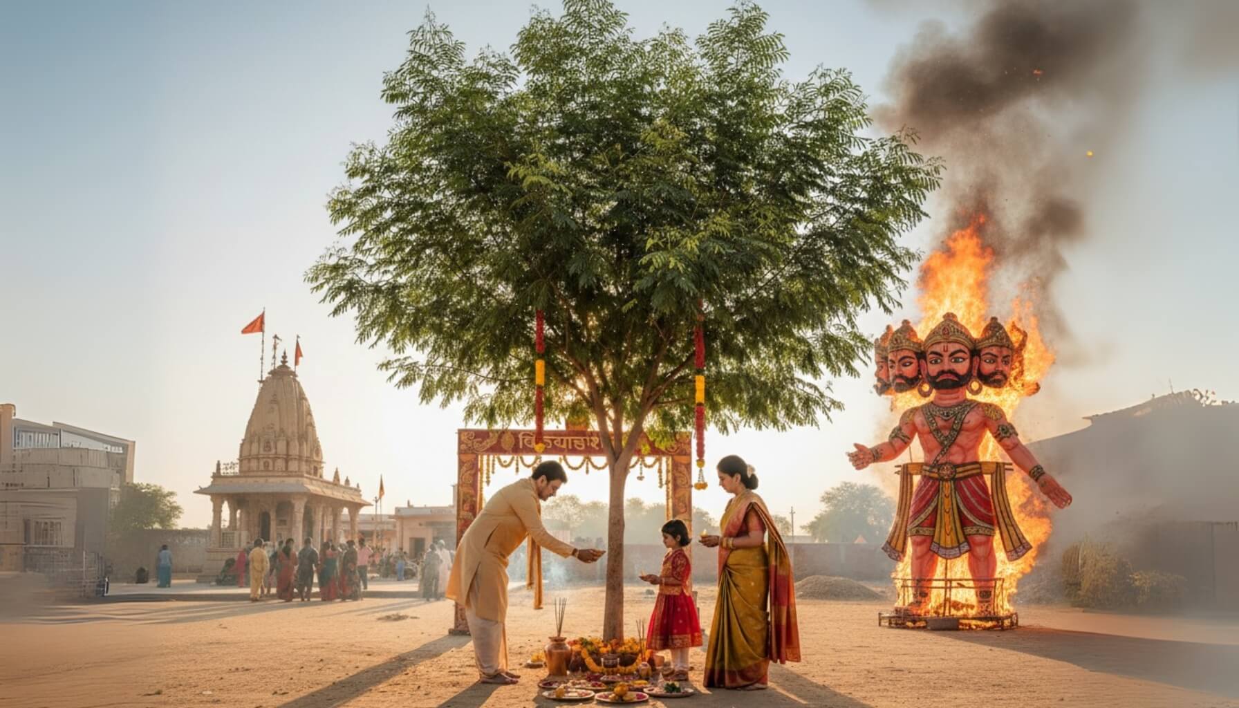 Dussehra 2026 kab hai aur Dussehra kyun manaya jata hai, iski poori jankari is blog me padhiye. Yahan aap jaan sakte hain Ram aur Ravan ke yudh ka pauranik mahatva, adharm par dharm ki vijay ka sandesh aur Vijayadashami ke din ki paramparaon ka arth. Dussehra ka tyohar bhakti, shaurya aur satya ki jeet ka pratik mana jata hai.