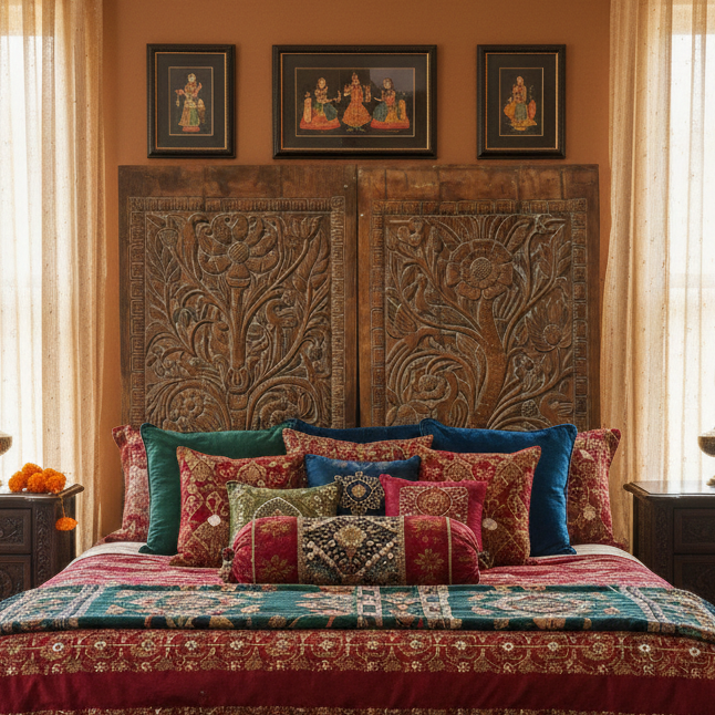At Mogul Interior, we take pride in giving antique doors a soulful new purpose—reimagining them as bespoke headboards that anchor your bedroom with character and quiet grandeur.
